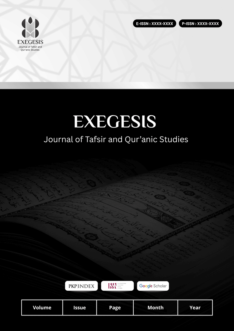 Exegesis: Journal of Tafsir and Qur’anic Studies is a peer-reviewed academic journal that focuses on the critical and interdisciplinary study of the Qur’an and its exegetical traditions. It publishes original research exploring classical tafsīr, contemporary hermeneutics, linguistic and historical approaches, as well as thematic and comparative analyses across various Islamic schools of thought. Bridging textual scholarship with modern intellectual challenges, the journal aims to deepen understanding of the Qur’anic discourse in both historical and contemporary contexts. Exegesis is published triannually in February, June, and October, and welcomes contributions in English, Arabic, or Bahasa from global scholars engaged in Qur’anic studies.